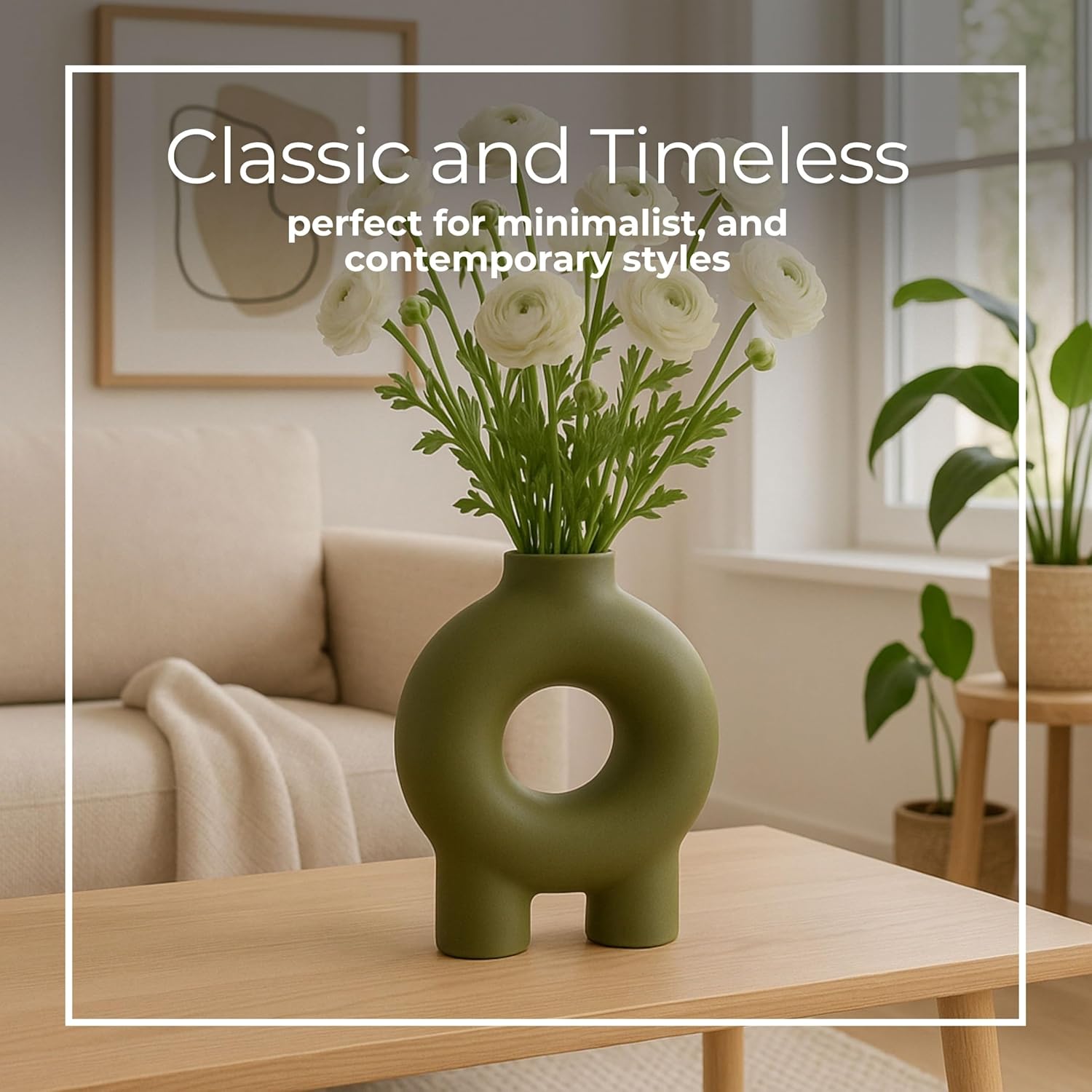 Refresh your space with the clean lines and timeless charm of this 7" olive ceramic vase — a sculptural piece that elevates any interior with ease. Whether placed on a book shelf, kitchen table decor, or office table, its soft matte finishes and curved silhouette deliver visual interest without overwhelming the space. This decorative vase brings a calming focal point to any home and kitchen setting, working beautifully with both modern and transitional aesthetics. Add it to your kitchen decor and accessories rotation or use it to elevate your bathroom decor and accessories with understated luxury. Whether styled alone or grouped with other vases, this piece effortlessly enhances your shelf or table styling. It’s ideal for dining table setups, housewarming gift, or cute room decor moments that call for something fresh and clean. Perfect for fake flowers, fresh stems, or pampas grass — or as a standalone accent — it adapts to your needs season after season including birthday decorations. Its compact size is great for apartment living or smaller vignettes, offering beauty without taking up space. It also makes a meaningful wedding decor detail or a thoughtful anniversary gift for couple celebrating new beginnings. Whether you’re shopping for home updates or searching for a versatile accent piece, this vase brings sculptural elegance and lasting appeal into every corner of your home.
