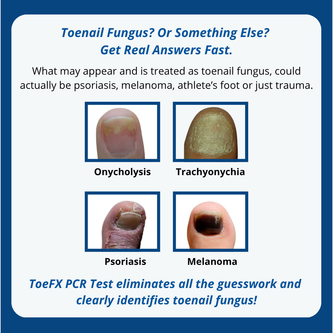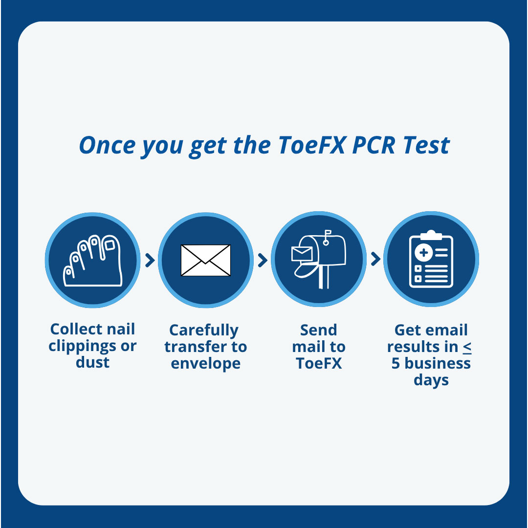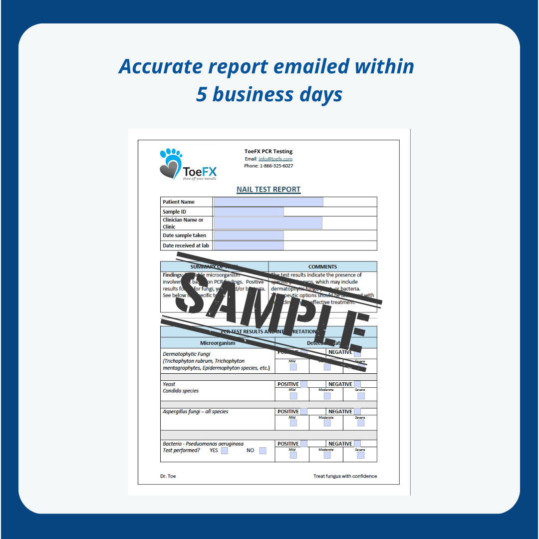 Take the first step towards clear and healthy nails with the ToeFX Fungal Identification Kit. This user-friendly kit simplifies the process of identifying fungal infections right from the comfort of your home. Simply collect nail clippings or dust, carefully transfer them into the provided envelope, and mail it back to us. Our advanced PCR testing will analyze your sample for a variety of pathogens, ensuring you receive precise and reliable results swiftly.